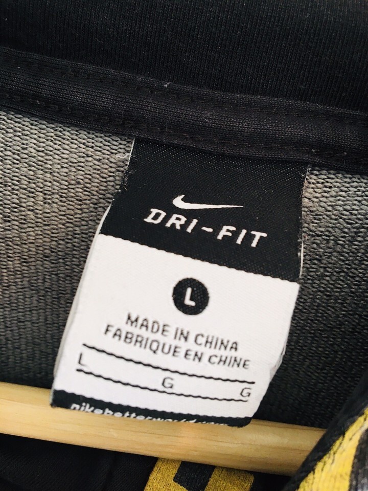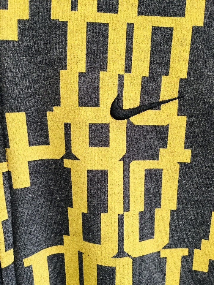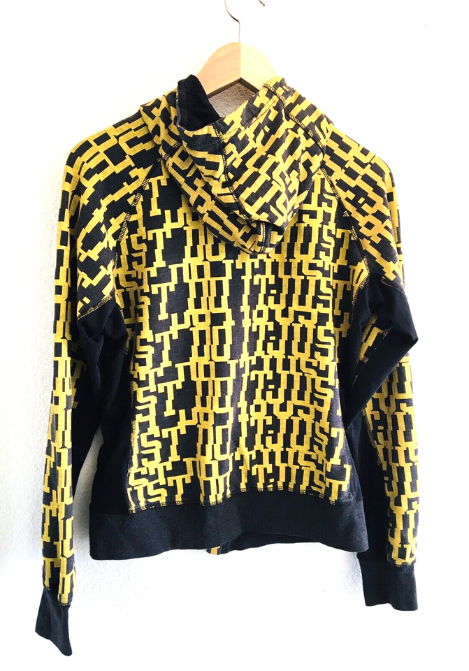 Nike Full Zip Hoodie Dri-Fit Women's Size Large (fits like a medium) All Over Print Just do it Black Gold