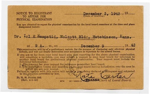Selective Service 1942 Notice to Registrant to Appear for Physical Examination