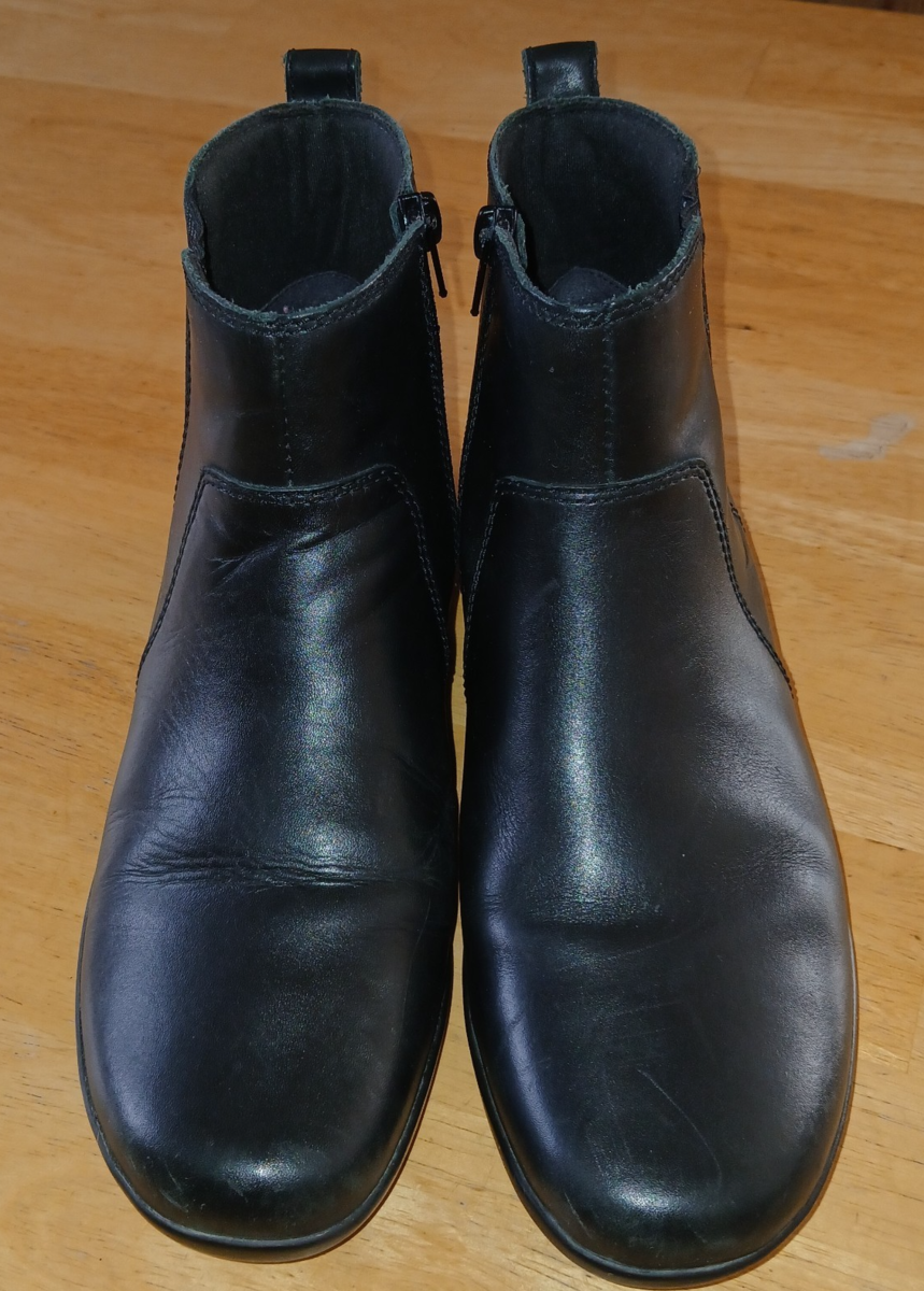 CLARKS COLLECTION LADIES BLACK LEATHER BOOTS-11-ZIP-SOFT CUSHION-GENTLY WORN