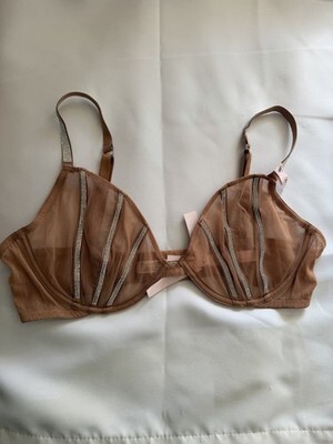 Victorias Secret Very Sexy Sheer Shine Unlined Low Cut Demi Bra Tan Mesh 38C NWT
