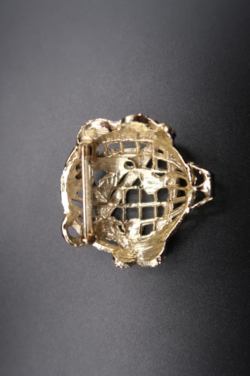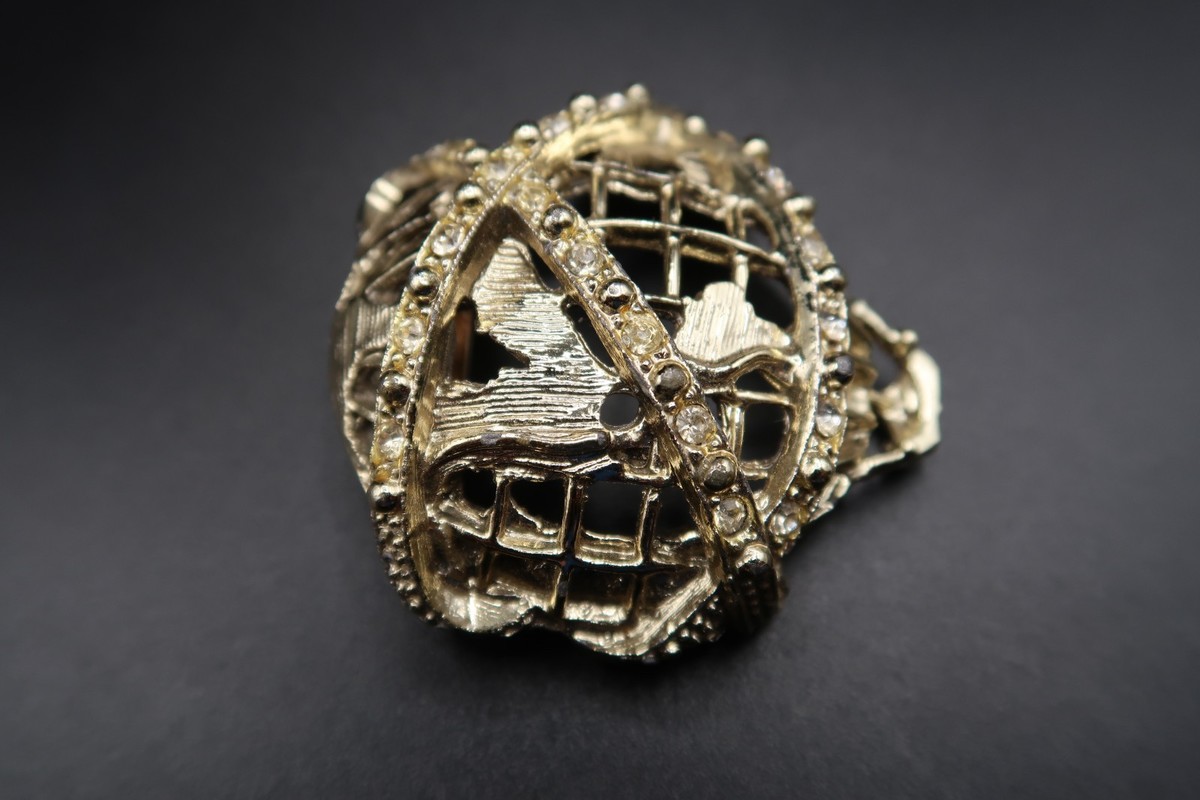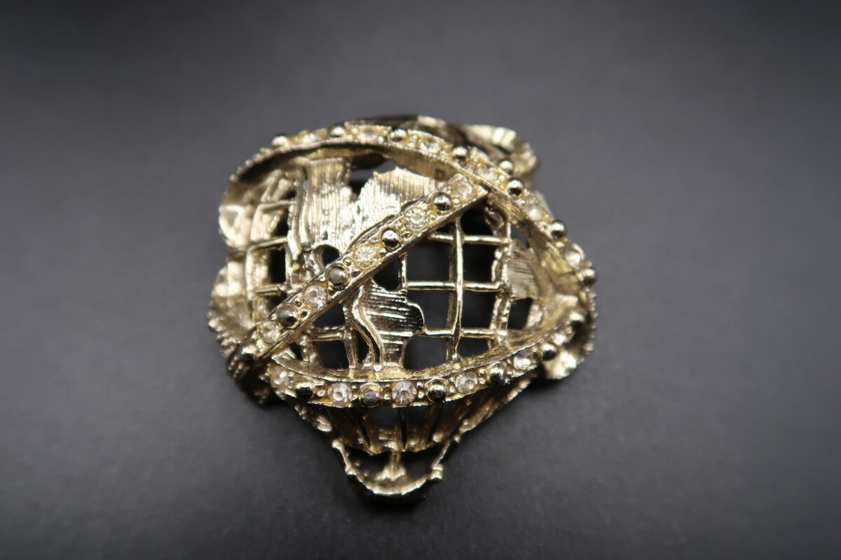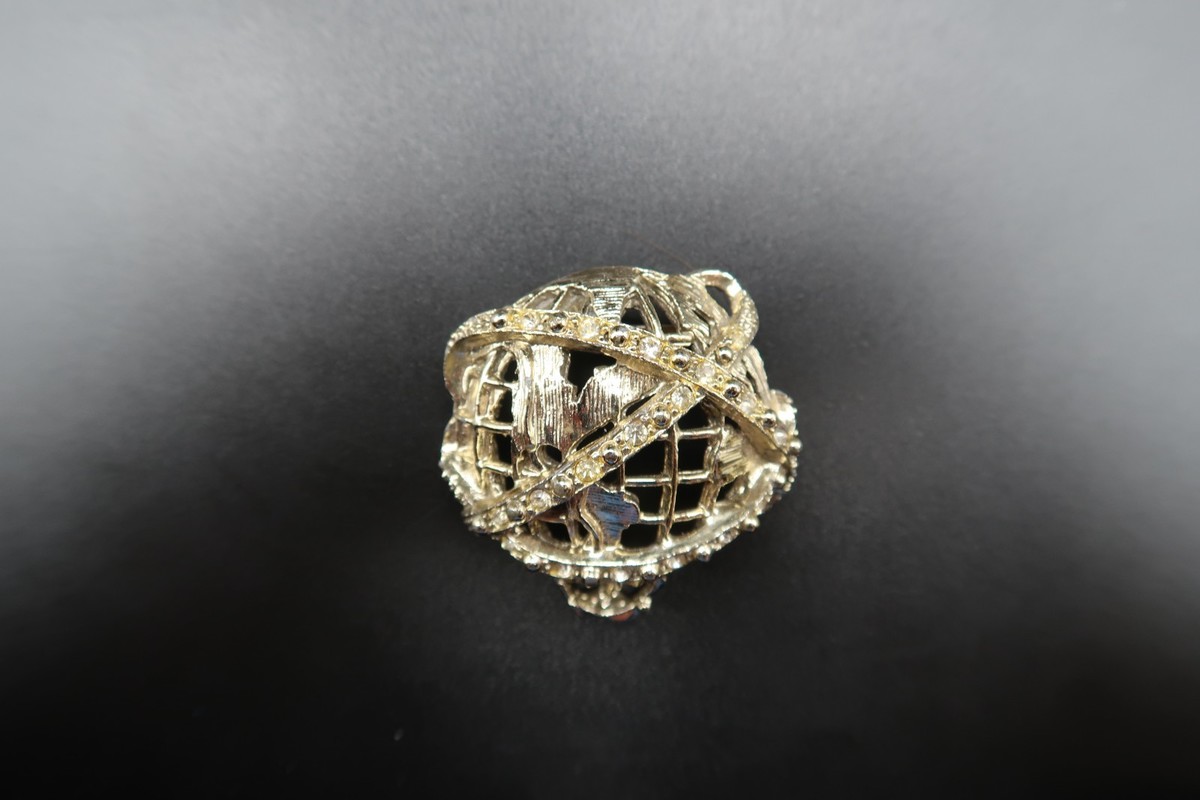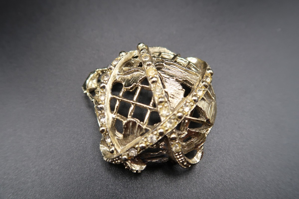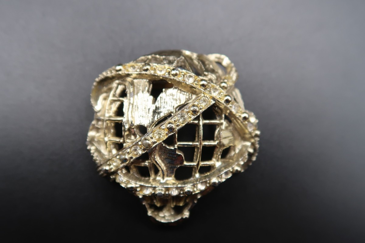 VTG New York World's Fair Gold Tone Metal Unisphere Brooch Rhinestones Balloon