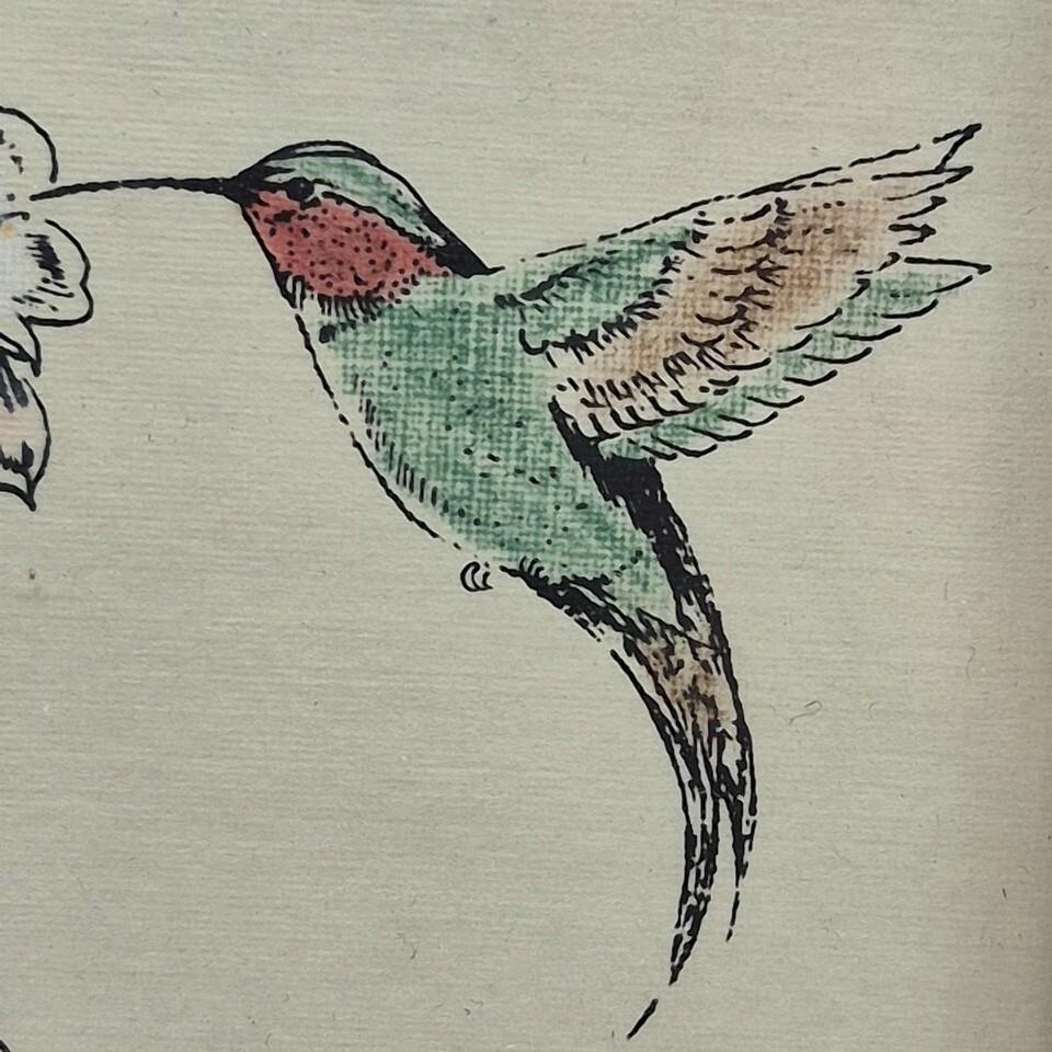 Signed Hand Drawing Hummingbird Flowers and similar items
