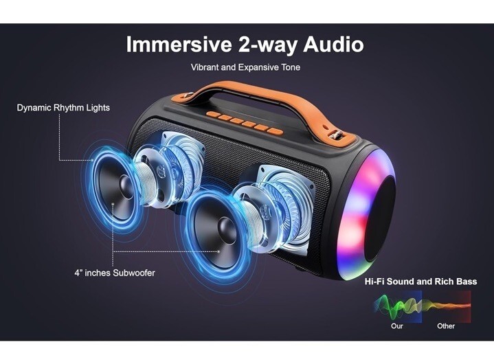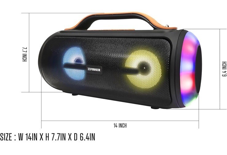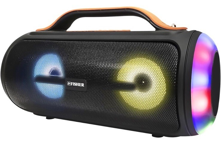 The Fisher Portable Bluetooth LED Ring Light Boombox is a versatile portable speaker system known for its quality and durability. With a sleek black color and water-resistant capabilities, this boombox from Fisher is both practical and stylish. Featuring Bluetooth connectivity, users can easily stream their favorite music wirelessly. The added LED ring light enhances the overall experience, making it perfect for personal use or gatherings. The Fisher IPX4 model is designed for on-the-go convenience and enjoyment of music anytime, anywhere.