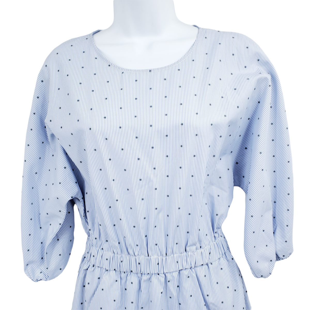 H M WOMENS SIZE 4 ELASTIC WAIST STAR PRINT 3/4 SLEEVE BLUE DRESS