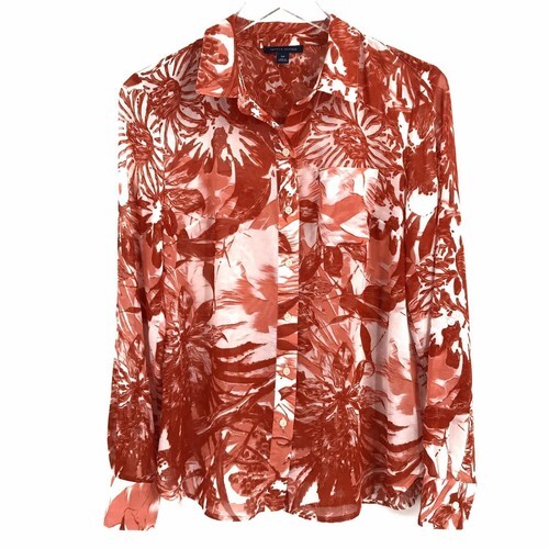 Tommy Hilfiger Women's Saharan Safari Long Sleeve Button Front Floral Top-Sz P/S