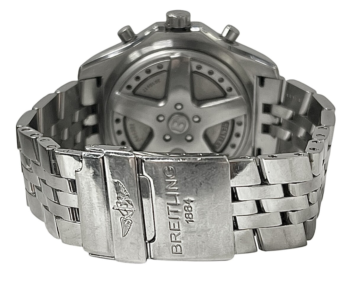 Type: Wrist watchBrand: BreitlingModel number: A44362Model name: Bentley ChronographCase width: 48.8mmWeight: 157.7Bracelet length: 10"Movement type: AutomaticCase Material: Stainless SteelBox included: noPaperwork included: noRunning: yesDial color: BlueBand material: Stainless SteelBezel Material: Stainless SteelCondition:UsedNotes:Authenticity guaranteed. Excellent condition. Needs a repair or cleaning of the reset plunger.