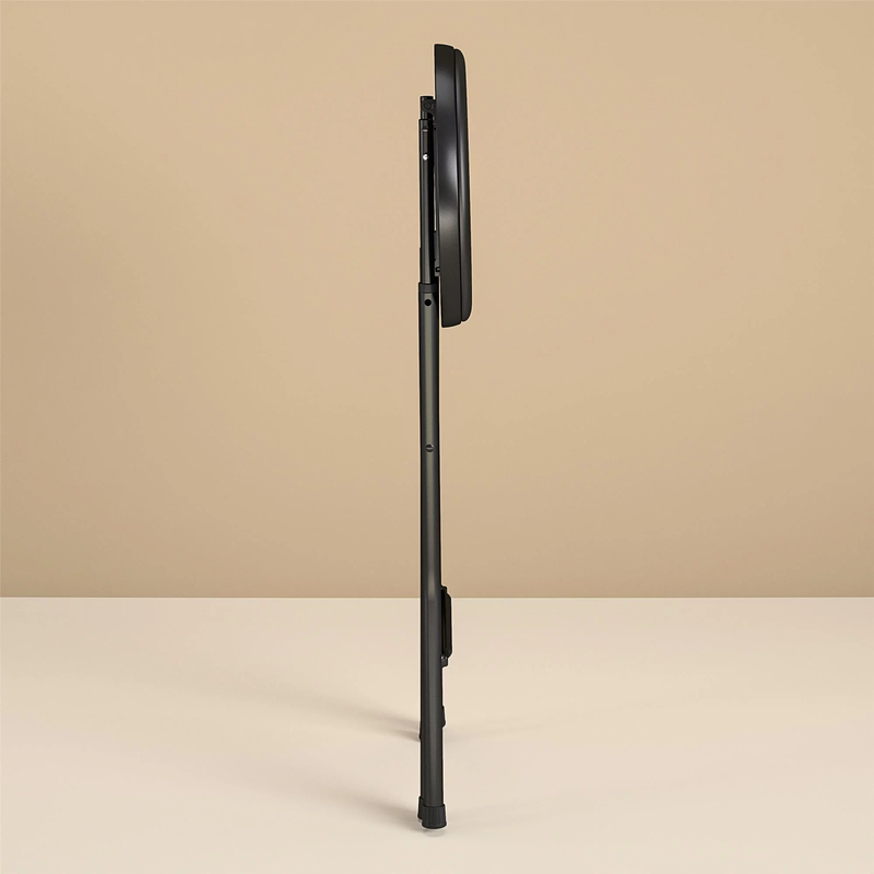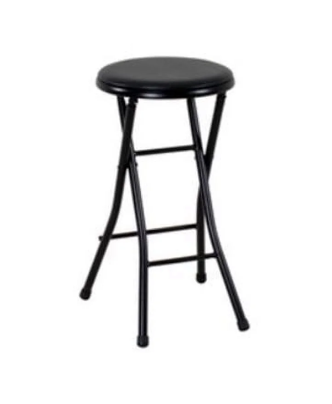 Mainstays Folding Metal Stool, Black Multi-purpose seating Modern style with sleek black color Lightweight and portable Compact build Folds flat Durable and sturdy Lightly padded seat Rubber feet covers help prevent sliding Easily fits in trunks and closets Great for parties, weddings and holidays Easy to clean