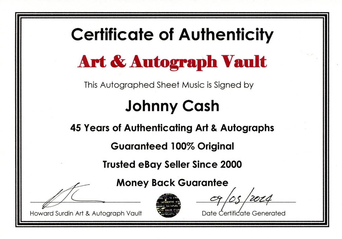 Johnny Cash Autographed Sheet Music Museum and 39 similar items