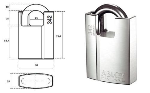 ABLOY PL342 GRADE : 4 . Keying platform ''CLASSIC'' with 2 keys BodyMaterial: Case-hardened steel . Finish: Chrome / ShackleMaterial: Case-hardened boron steel . Finish: Chrome. Diameter: 10mm / Vertical Clearance: 25mm / Horizontal Clearance: 25mm ABLOY CLASSIC is the icon for ABLOY rotating disc cylinders with a long history. The first ABLOY CLASSIC cylinders were sold in 1920 and they are still a part of the ABLOY cylinder family. The unique structure of rotating disc cylinders guarantees reliable and durable function without springs and pins.ABLOY CLASSIC has been the foundation for all ABLOY cylinder system /Number of Discs: 11 Key removable in locked position