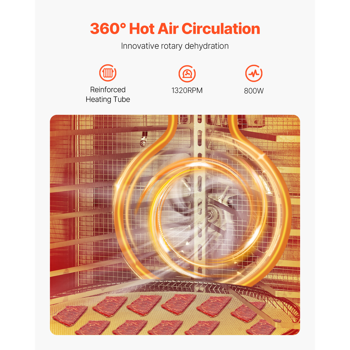 VEVOR Rotary Food Dehydrator Machine, 12 Stainless Steel, 800W Electric Dryer
