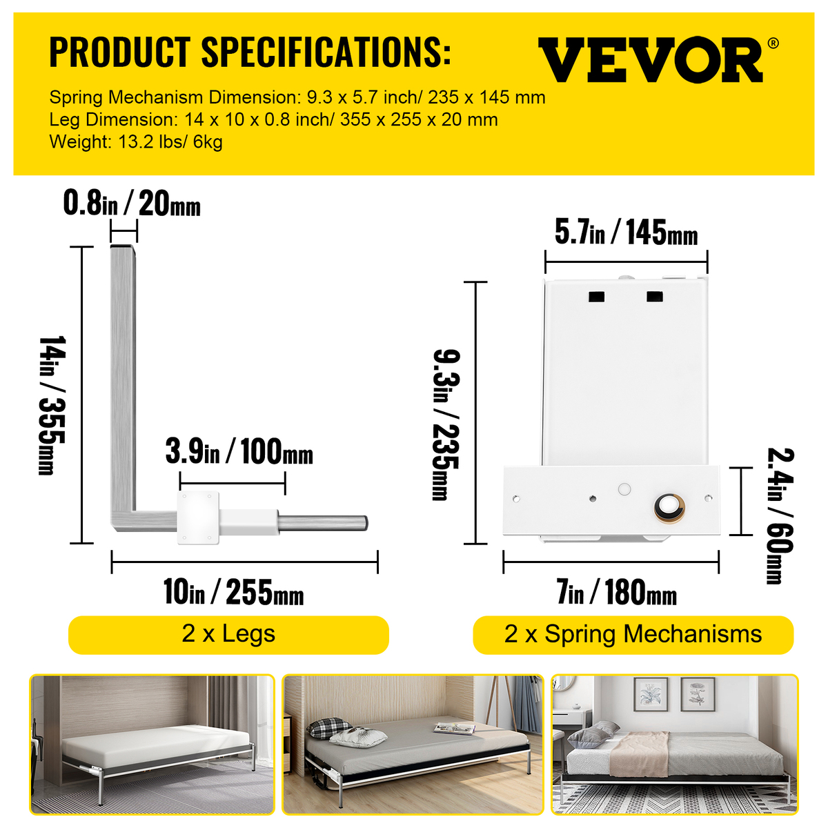 Superior Rebound Force: There are 5 large springs in the kit, which support the invisible bed to fold up and down, which is strong enough and not easy to break. One person can effortlessly fold-out or up the bed with a bearing capacity and better pull strength.