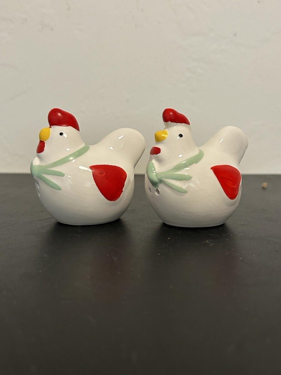 This vintage ceramic chicken rooster salt and pepper shaker set includes two items: a salt shaker and a pepper shaker with stoppers. The multicolor design in a country style adds a charming touch to any kitchen or dining table. Made of ceramic, these reusable shakers are easy to clean and should be hand washed only. Great for collectors or those looking for unique kitchen tools, this set is a fun and decorative addition to any home.