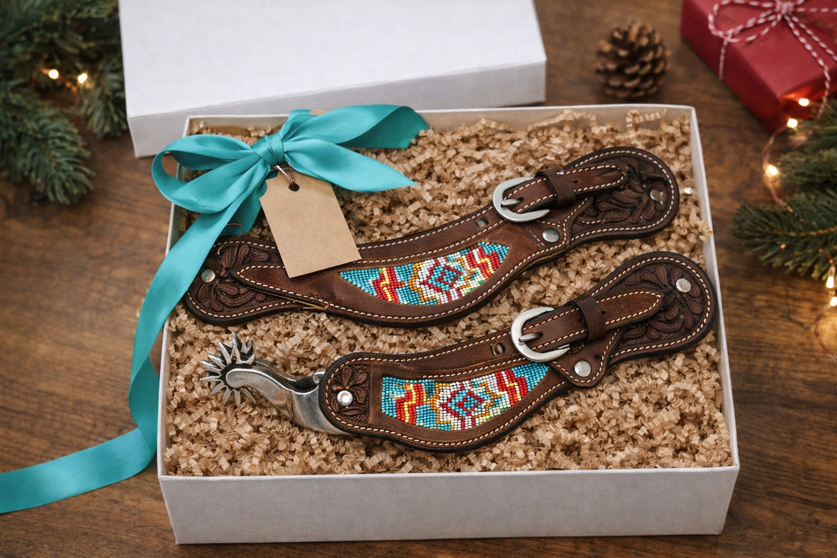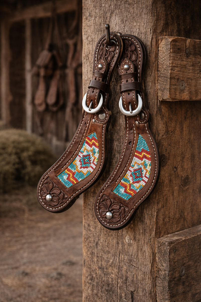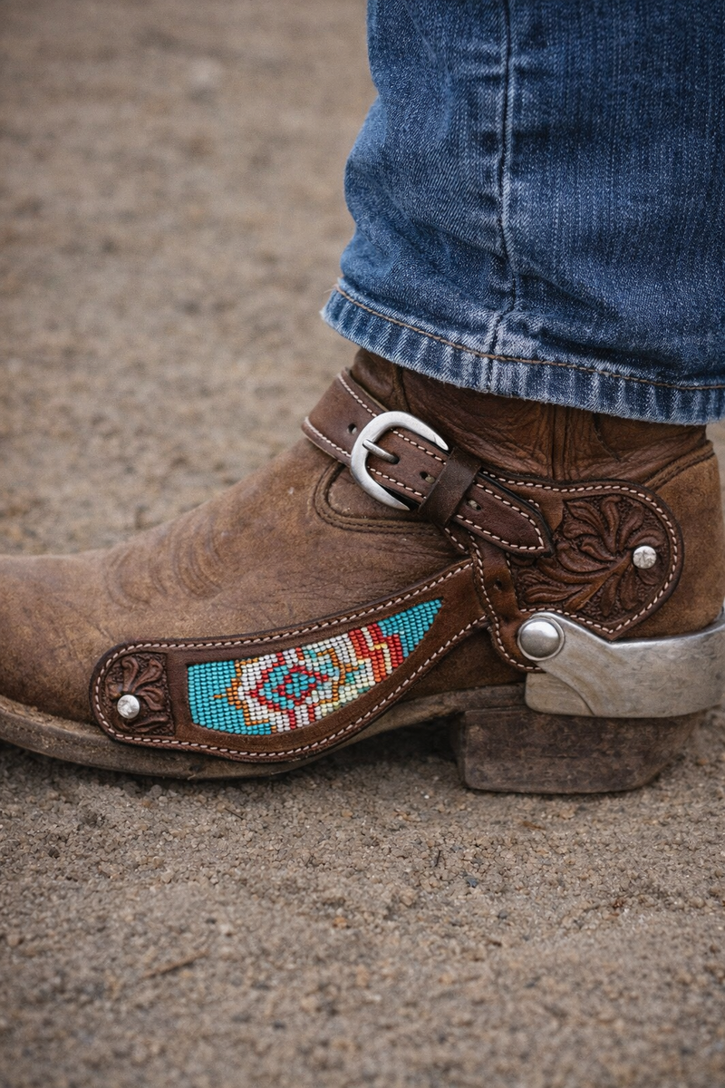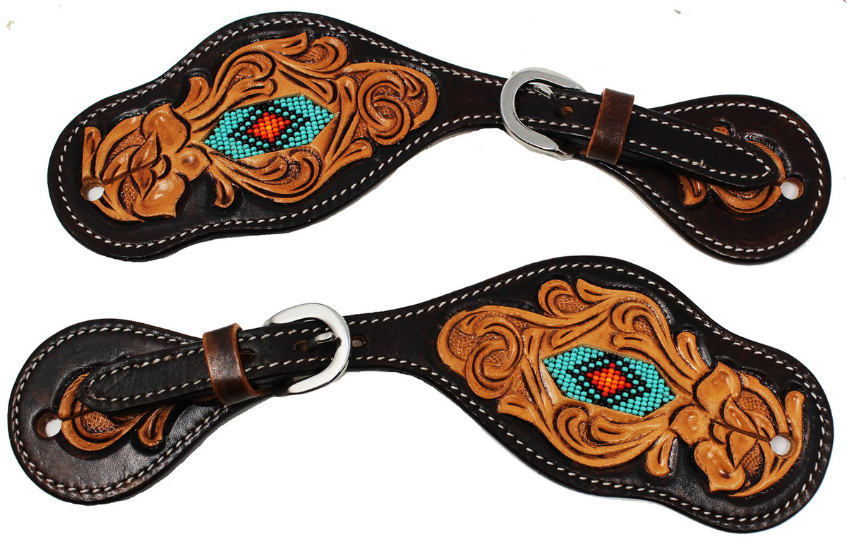 Horse Western Tooled Leather Cowboy Boots Spur Straps 74RT0107