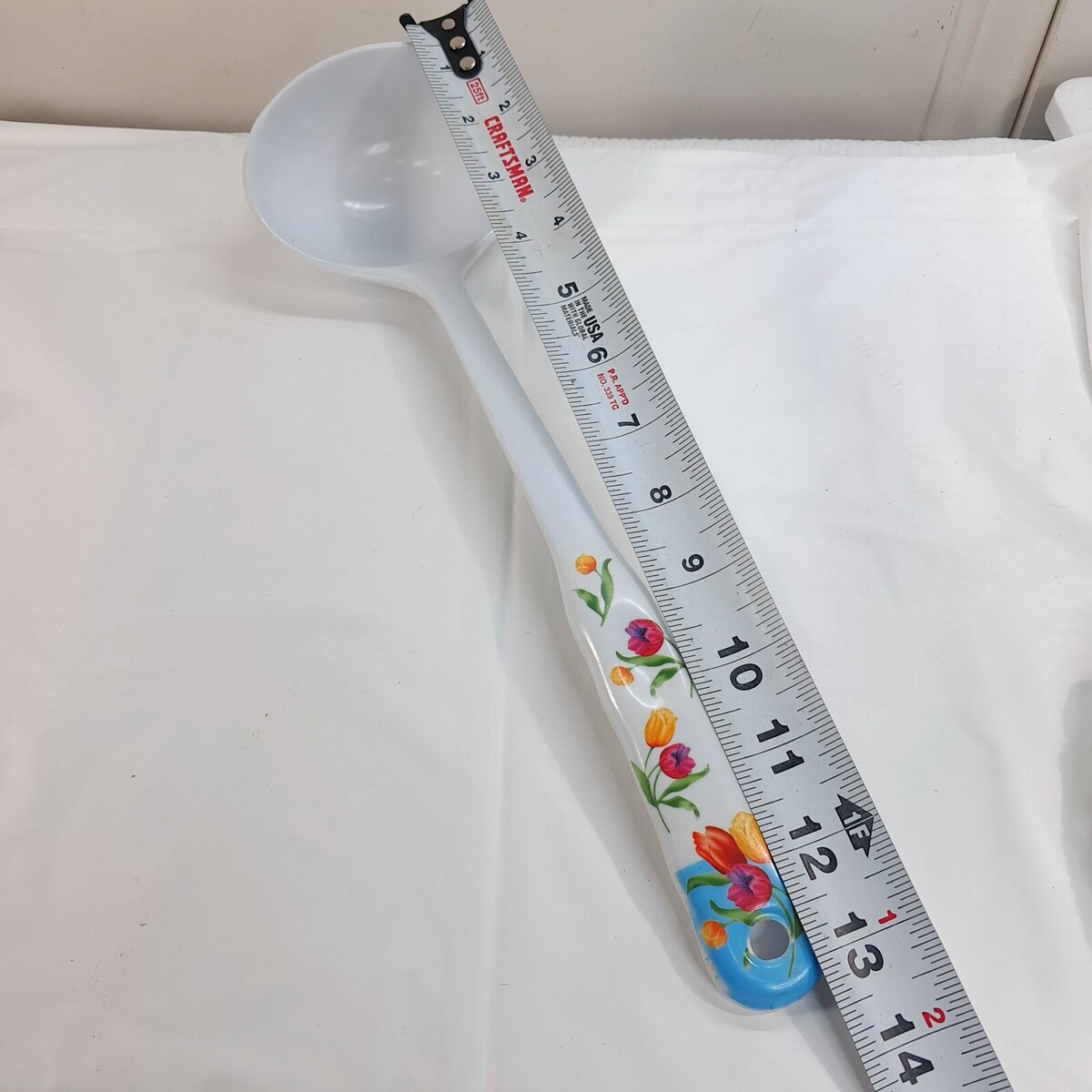 Melamine Ware ladle spoon floral tulips flowers scoop hard plastic white Vintage