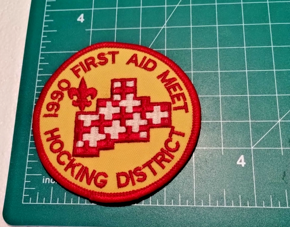 BSA 1990 First Aid Meet Hocking District Ohio Patch Red & Yellow Embroidered