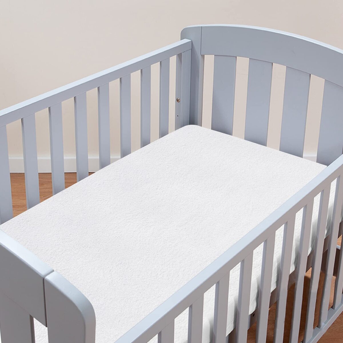 Waterproof and Noiseless: Crib size waterproof mattress protector is made of Viscose Made from Bamboo Terry fabric with 100% waterproof TPU layer on the back to protect your precious mattress keep away from all kinds of liquids including fluids, perspiration, bedwetting and stains. Because of the noiseless TPU layer, you will not hear any noise when you sleep on it.