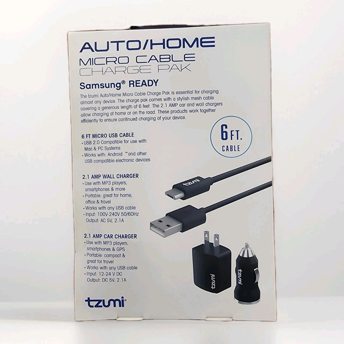 Tzumi Auto/Home Micro Cable Charge Pak-6 FT Cable-Samsung Ready