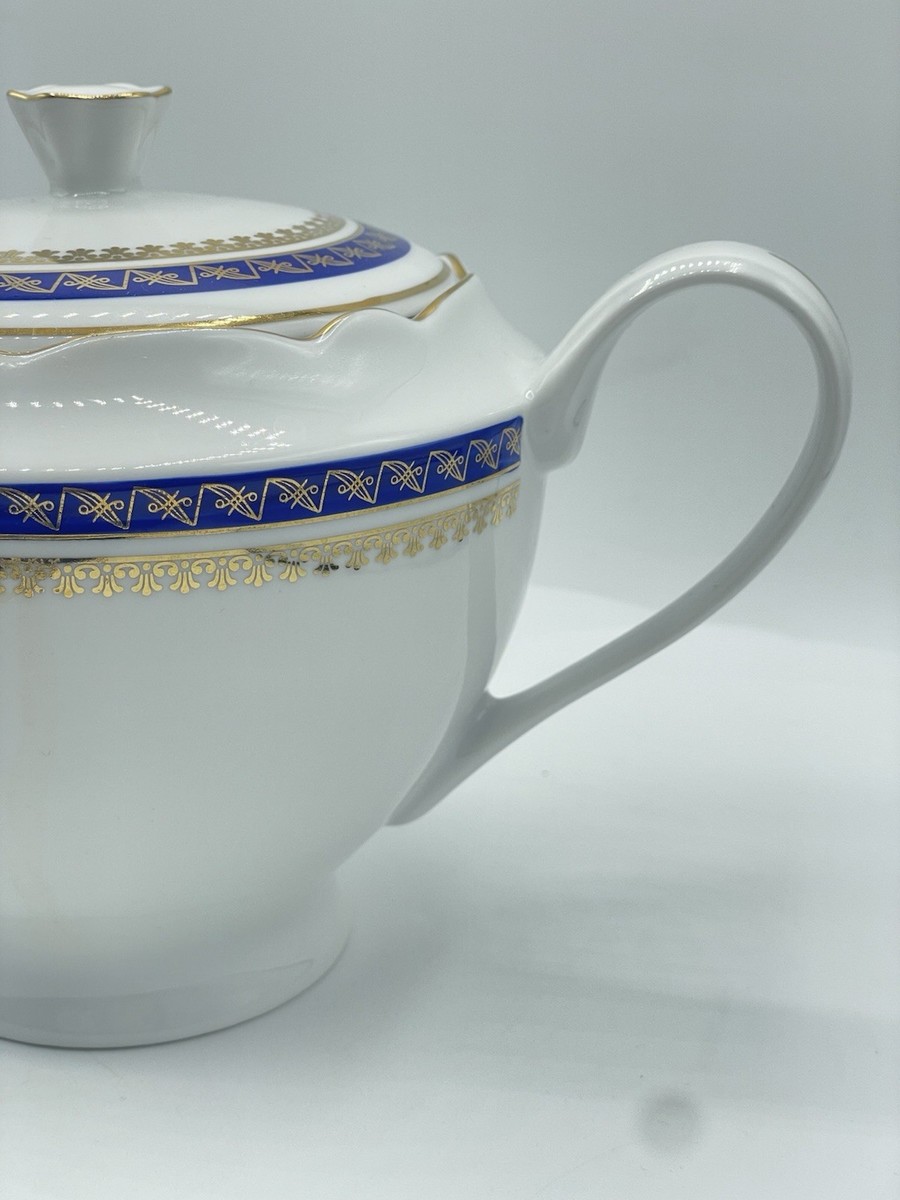 Cmielow Poland Big Coffee Pot Tea Pot White blue Gold Hand Painted Filigree Bs308