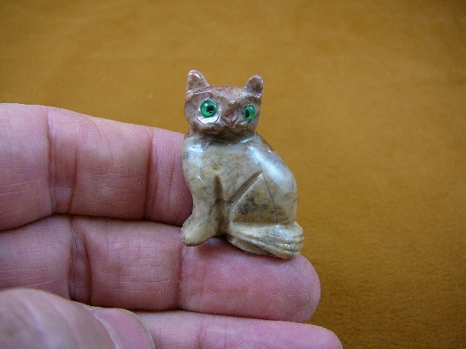 (Y-CAT-34) red tan little KITTY CAT gemstone love cats SOAPSTONE figurine PERU