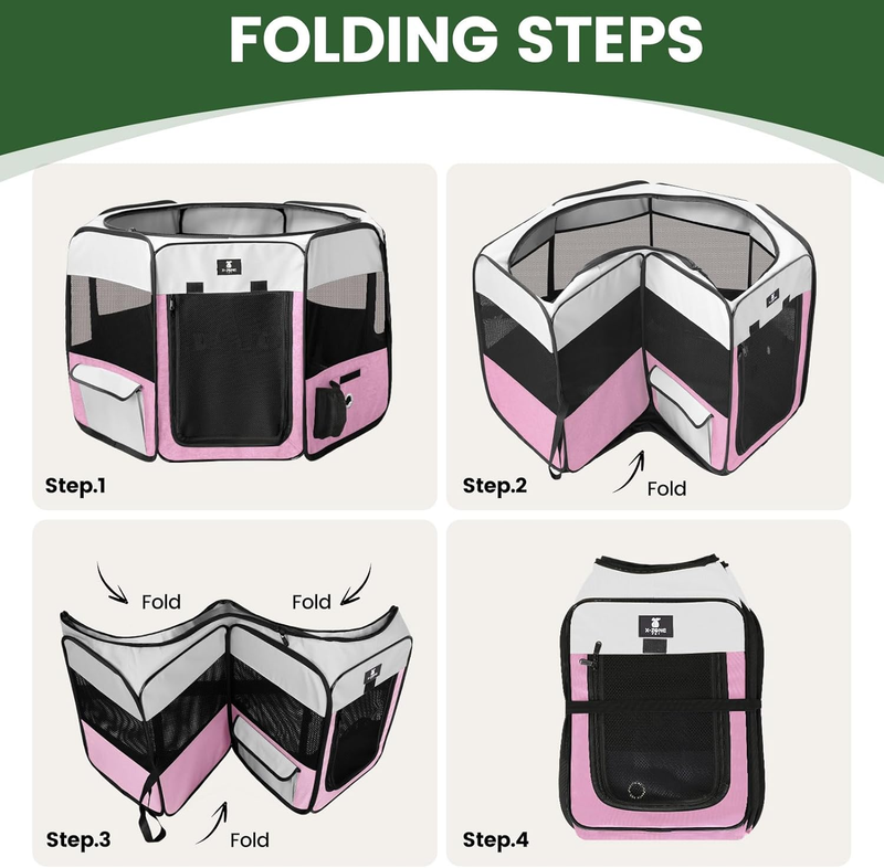 The foldable pet playpen comes with a convenient carry case for easy storage and portability