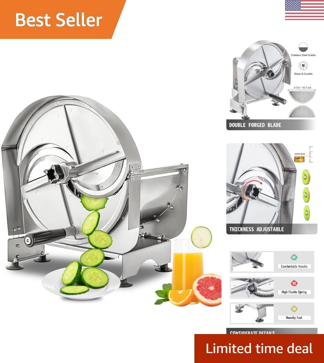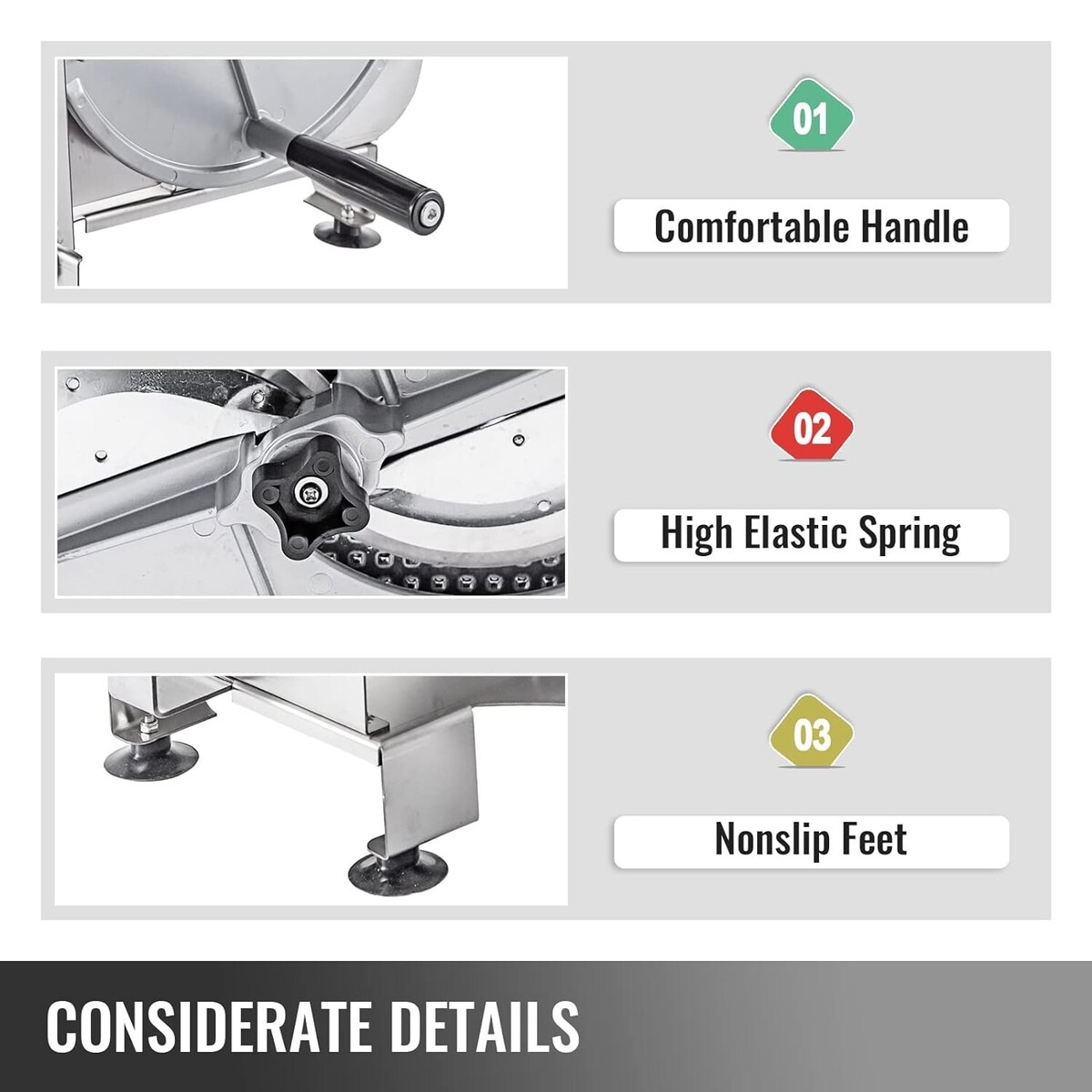 Adjustable Thickness: The adjustable thickness ranges from to 12mm to meet different needs. By rotating the adjustable knob clockwise, you can cut thicker slices, and for thinner slices, you need to rotate it counterclockwise.