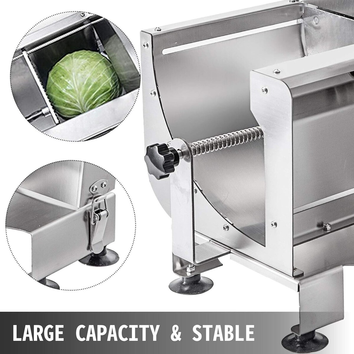 Excellent Performance: With large capacity feed chute and adjustable pushing rod, all kinds of food, no matter long or short, hard or not, small or big chunk, can all be sliced easily. The base with the adsorption pad reinforced its stability and increased its safety.