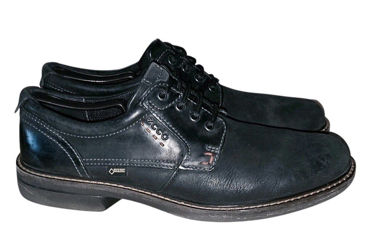 ECCO Turn GTX Leather Oxford Shoes Mens 11 EU 45 Black Gore-Tex Plain Toe Nubuck