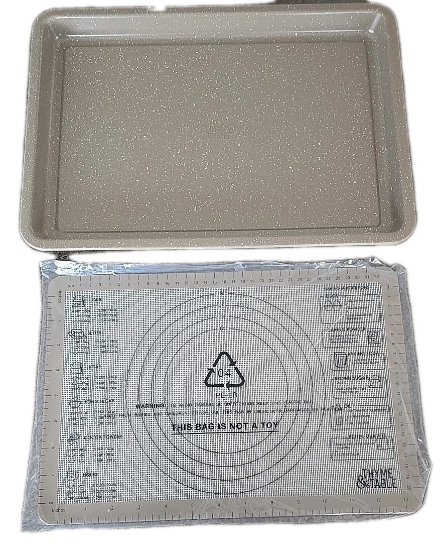 Thyme & Table ~ TAUPE Speckled ~ Non-Stick 10 x 15 Baking Cookie Sheet w/Mat