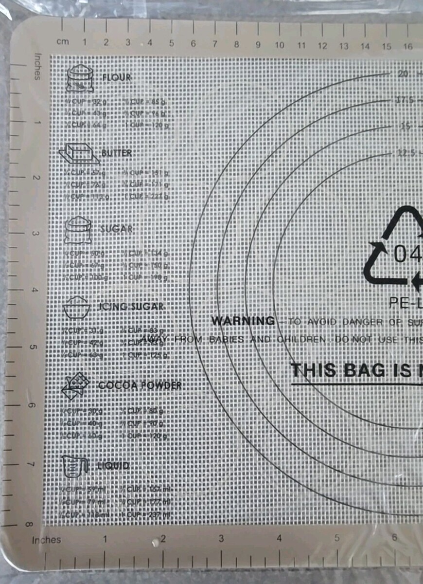Silicone mat with measurement information ~ cm and inch measurements along outside edge