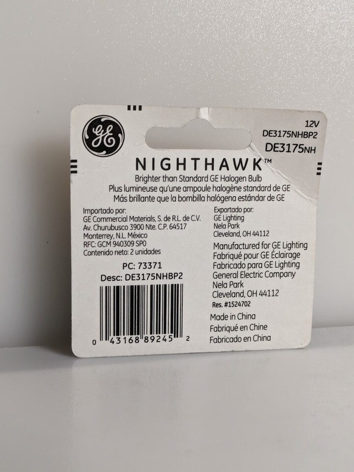 Pack of 5 GE Nighthawk Standard Halogen Replacement Bulbs 12v DE3175NH 2/Pack