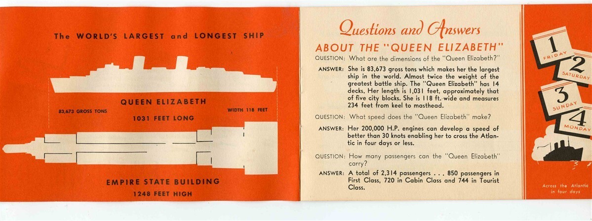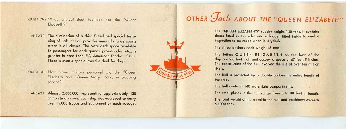 Facts About the World's Largest Liner Queen Elizabeth Booklet 1946