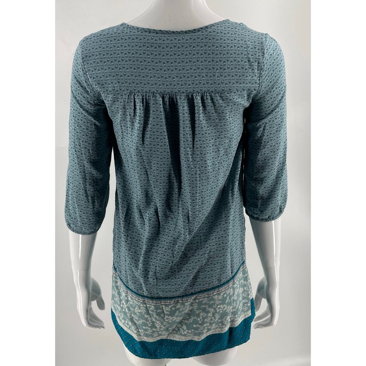 Old Navy Womens Mini Tunic Dress Size XS Blue Printed Boho Tassel Tie 3/4 Sleeve
