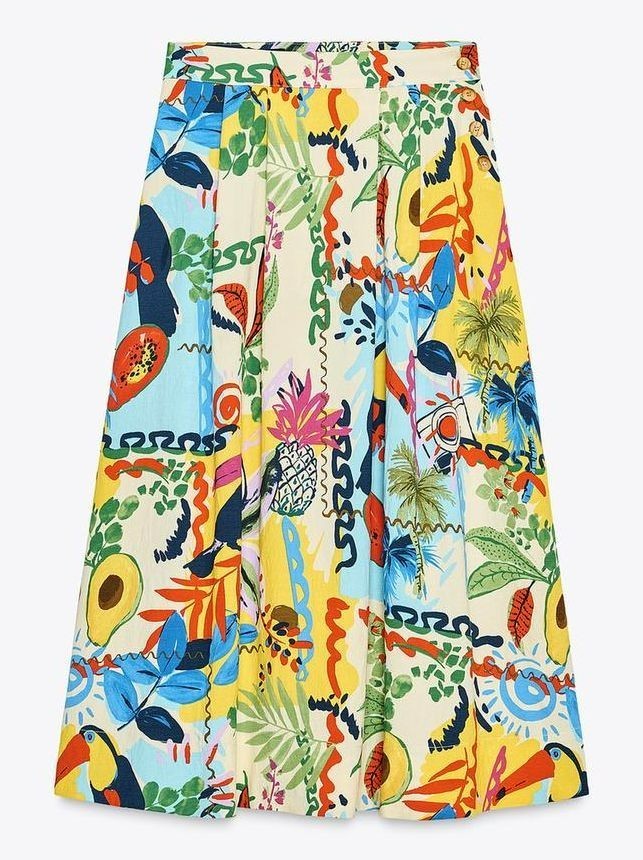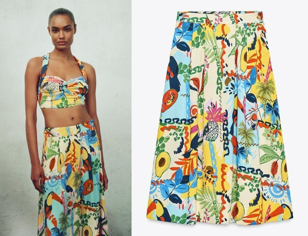 ZARA SOLDOUT! TROPICAL PRINT LAYERED MIDI SKIRT L