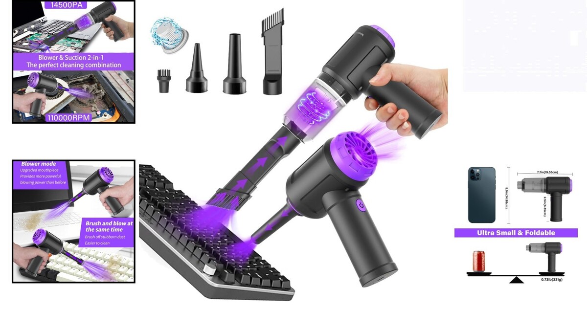 14500 Pa Mini Computer Vacuum with 110000RPM Air Duster