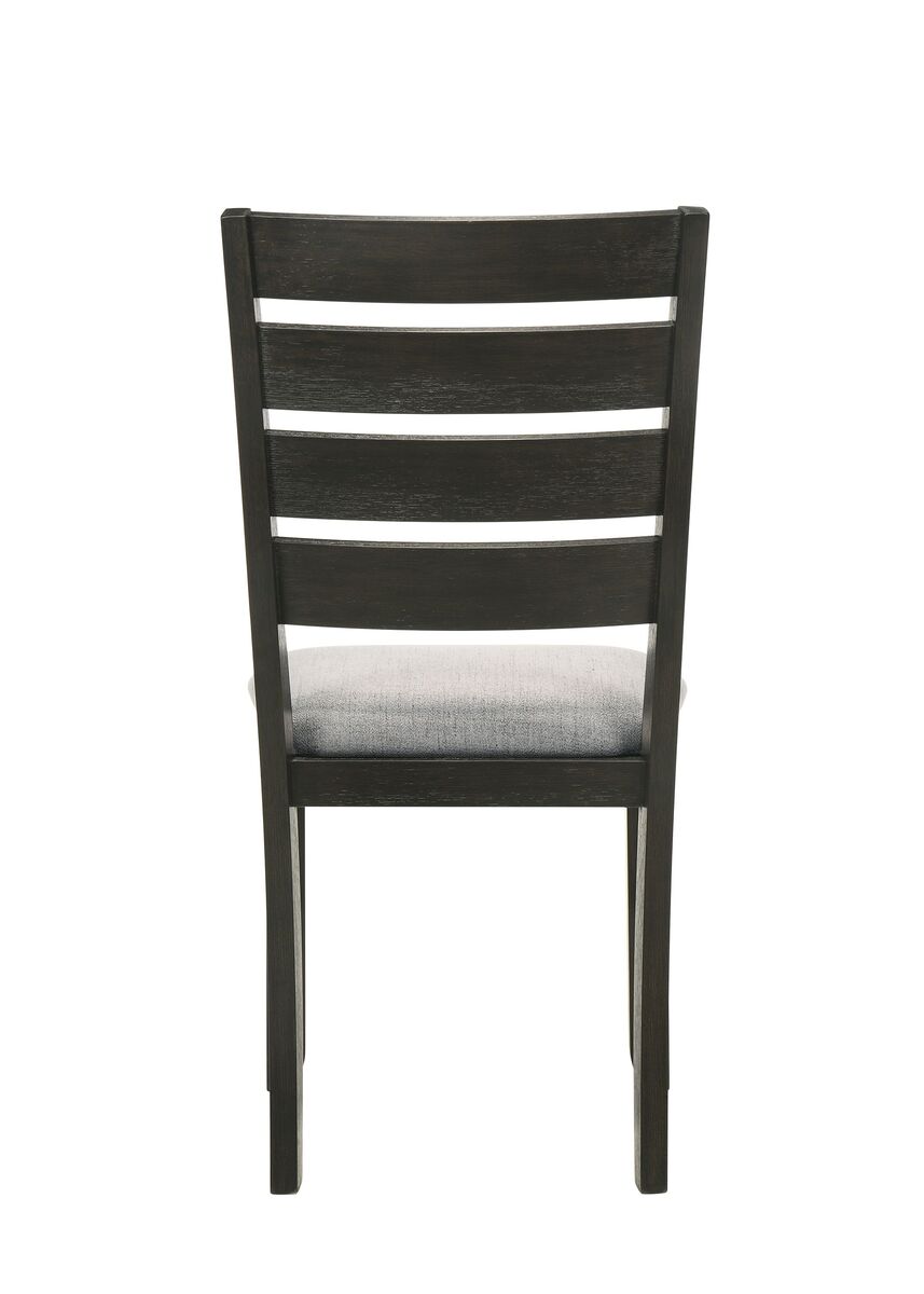 Product Contemporary StyleWheat Charcoal FinishLadder Back StyleRubberwood and birch veneersFabric UpholsteryCushion SeatsSturdy and durable constructionDescription:Product DescriptionDimensions - 18.5ft X 21.7ft X 40ftHDescription :- This dining side chair with gray fabric upholstered seat adds contemporary style and comfort. Use the chair at either of the two choices of rectangular dining table. The smooth, ladder back style backrest completes the sleek look of the chair.. Listing Includes - Set of 2pc Dining Chairs Only. Simple Assembly requires.