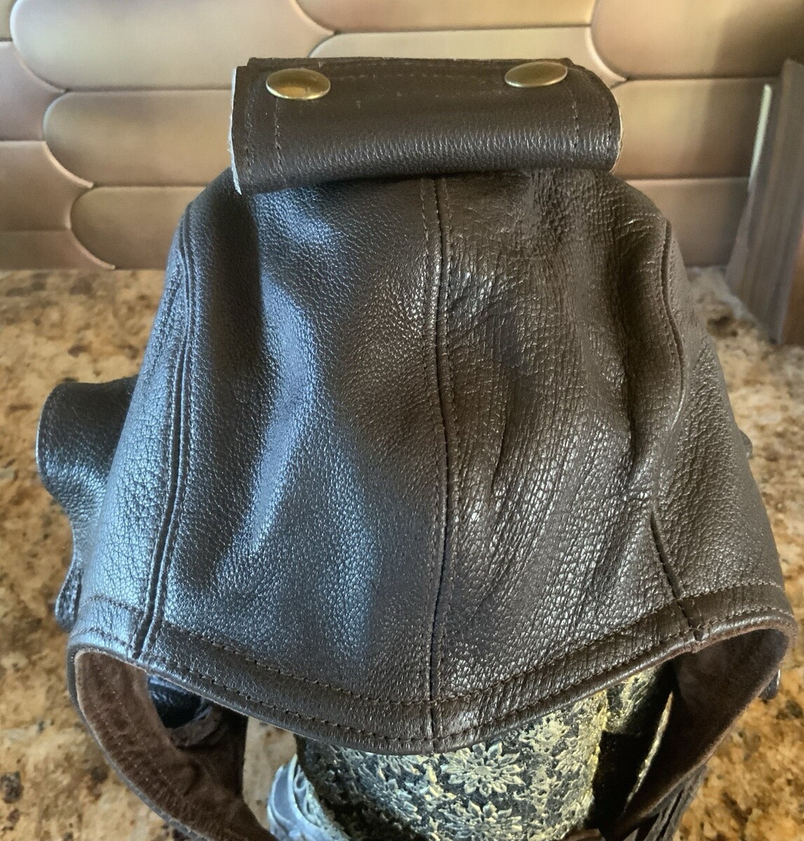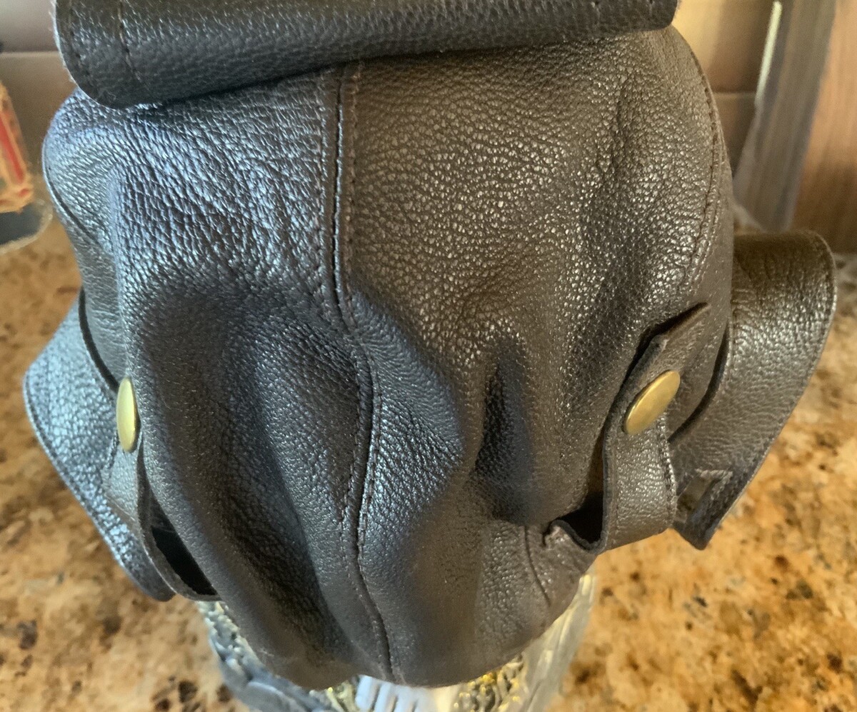Flight Suits Ltd Brown LEATHER & Suede Flying Open Cockpit HELMET Cap Sz Large