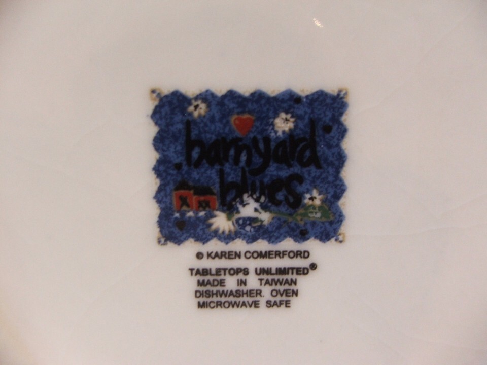 2 Cup & Saucer Sets Tabletops Unlimited Barnyard Blues Karen Comerford