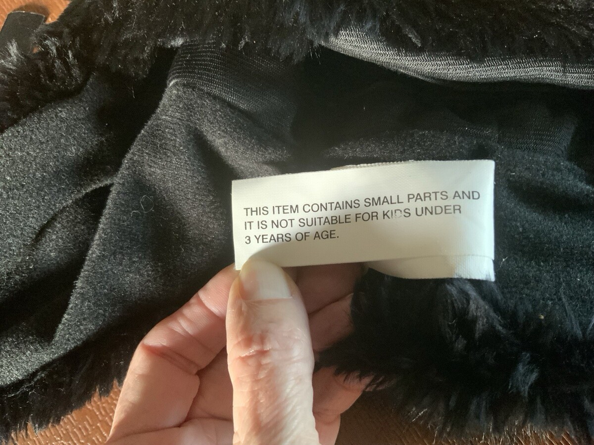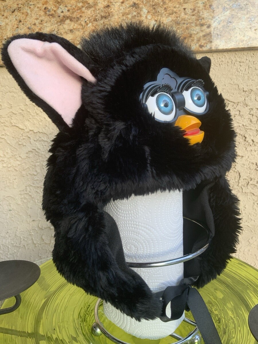 FURBY Fluffy Black Furry Pink Ears HAT with Ties 1999 Hasbro, Inc. NWT