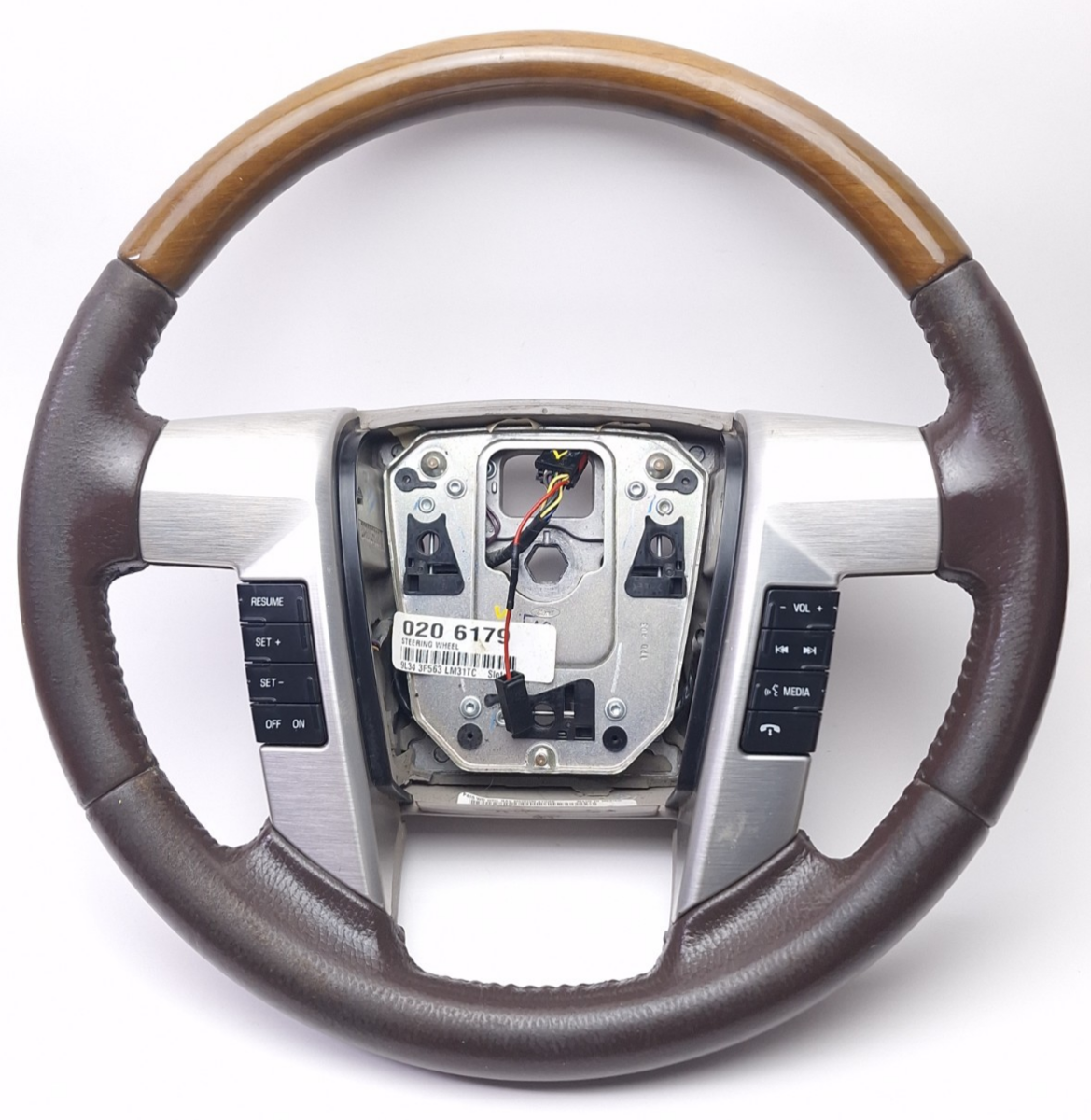 2009 2010 Ford F-150 F150 Complete Steering Wheel Brown Leather Wood Platinum