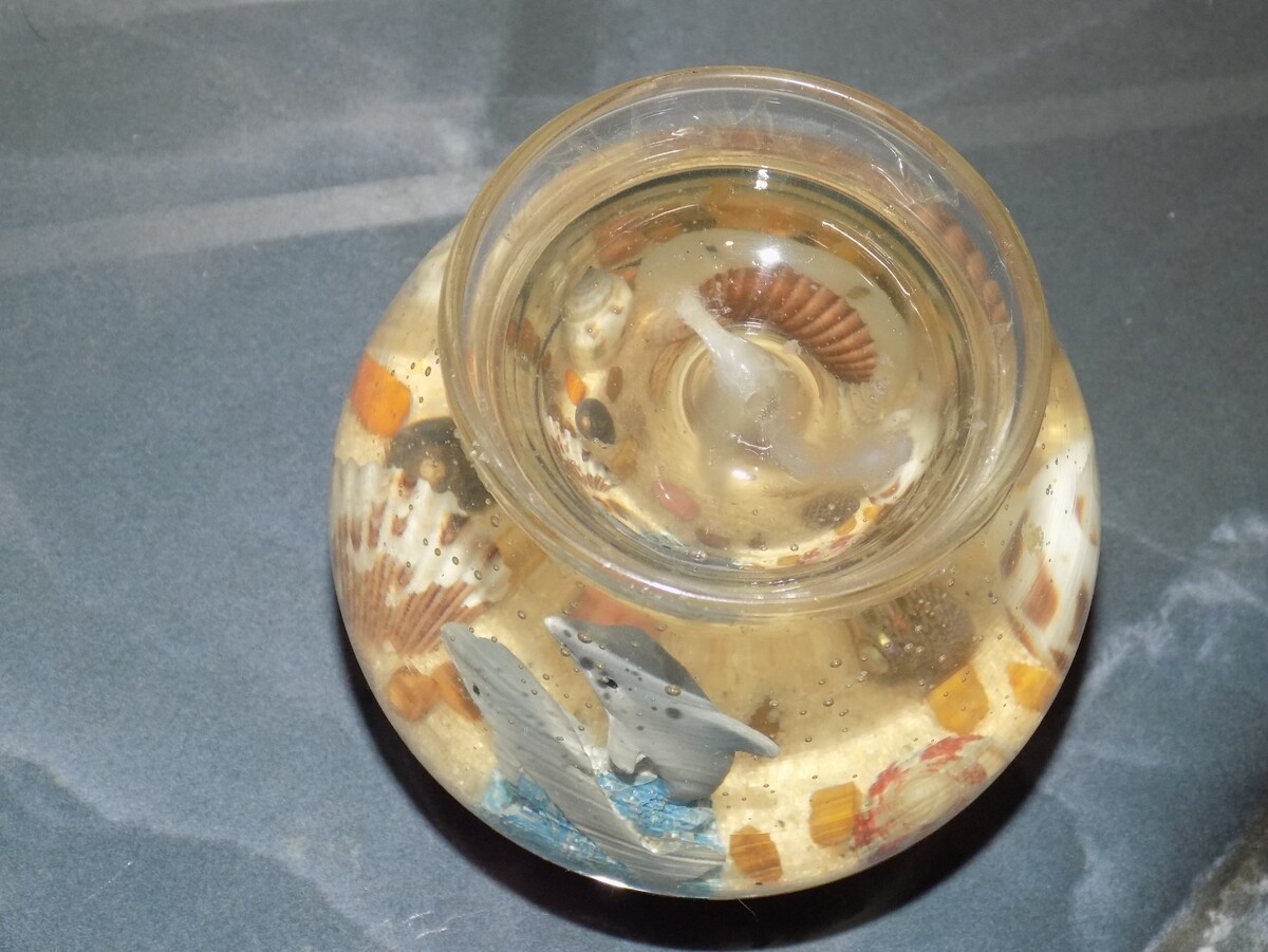 This is a beautifully crafted gel wax candle featuring a beach-themed design with seashells and dolphins. Handmade with attention to detail, this coastal-inspired piece adds a touch of nautical charm to any home decor. Perfect for creating a relaxing atmosphere, this candle is new and ready to bring a touch of the ocean into your living space.