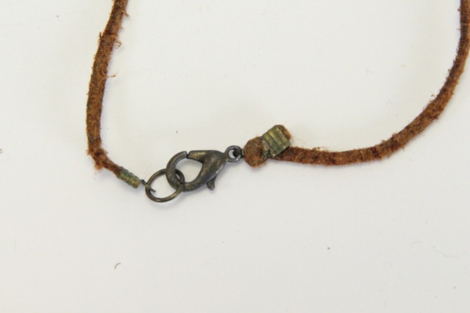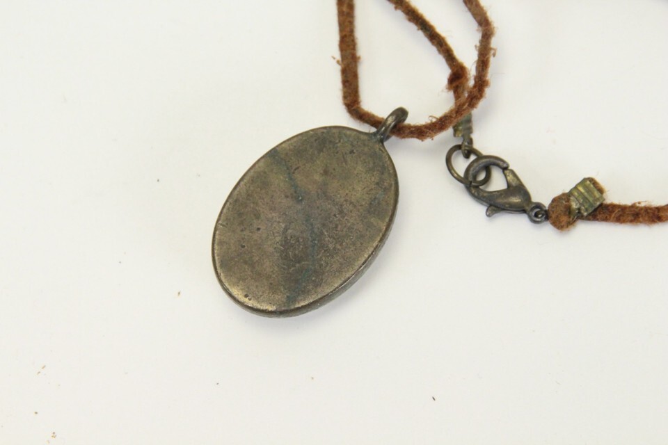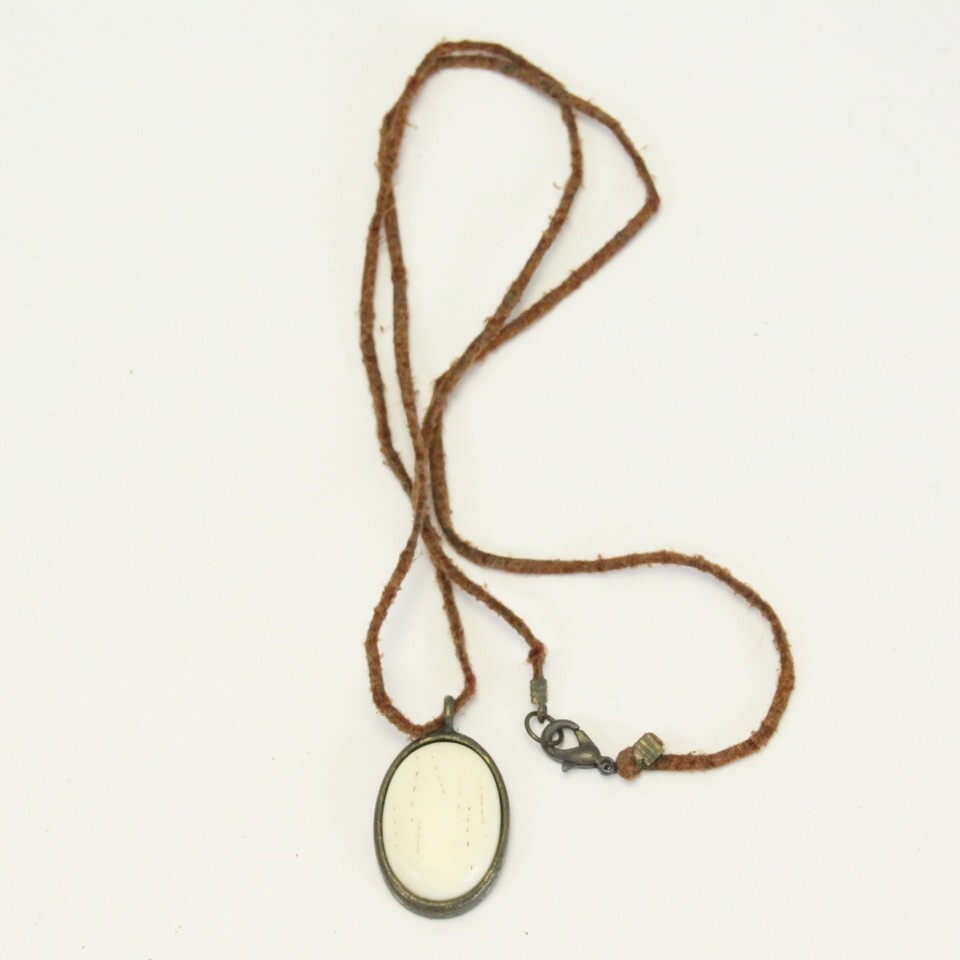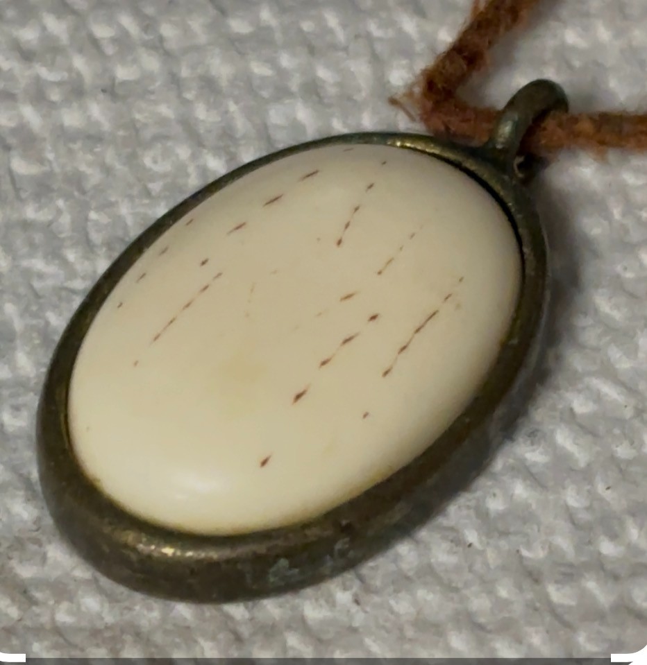 Antique Oval Howlite Stone Reddish-brown Veins Brass Case Pendant Necklace