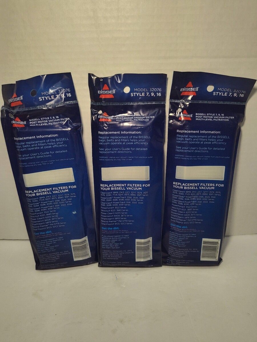 Lot of 3 Bissell Vacuum Filters 32076 Style 7, 9 & 16 Upright Vacuums NEW Sealed