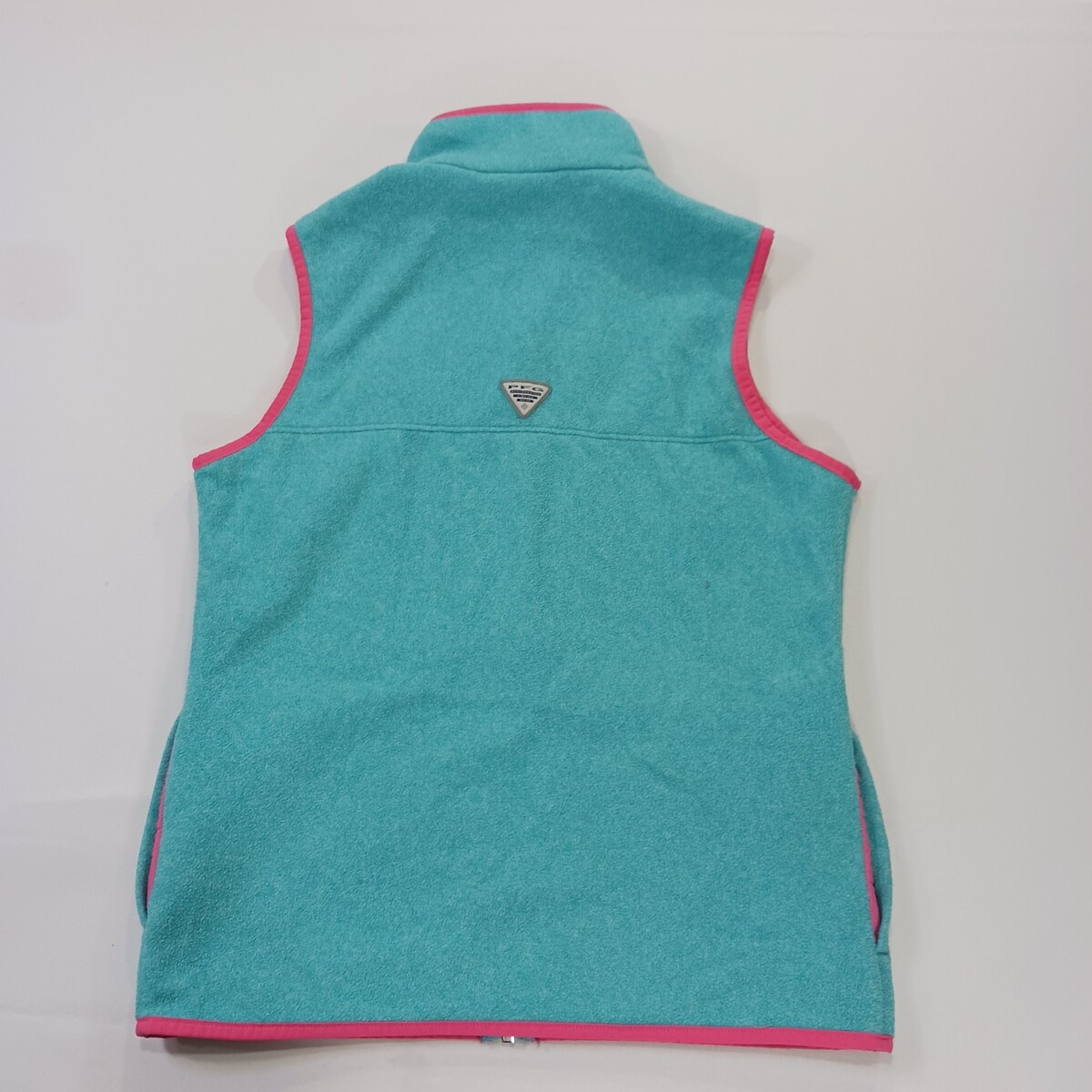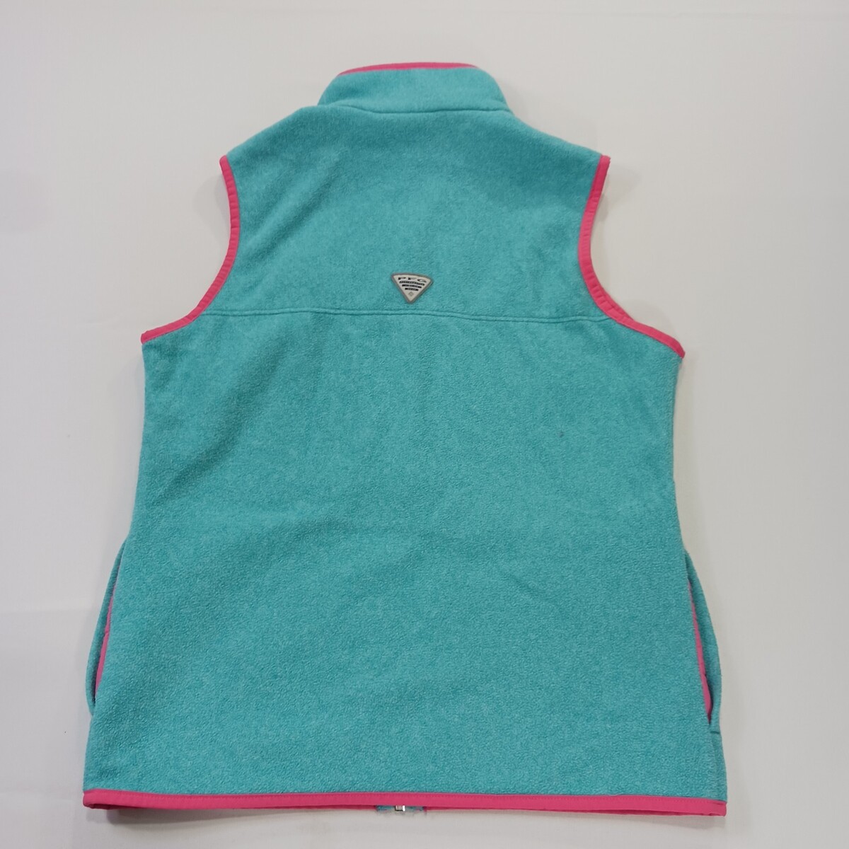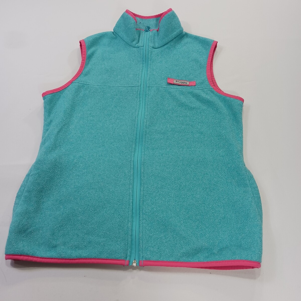 The Columbia PFG Vest for women in size M is a stylish and versatile addition to any wardrobe. This teal harborside sweater features a full zip for easy layering, a mock neck neckline, and a sleeveless design. Made of polyester, this machine washable vest is ideal for travel, casual outings, or workwear. With its solid pattern and colorful theme, this Columbia vest is perfect for outdoor activities or everyday wear. The vest also includes pockets for added convenience.