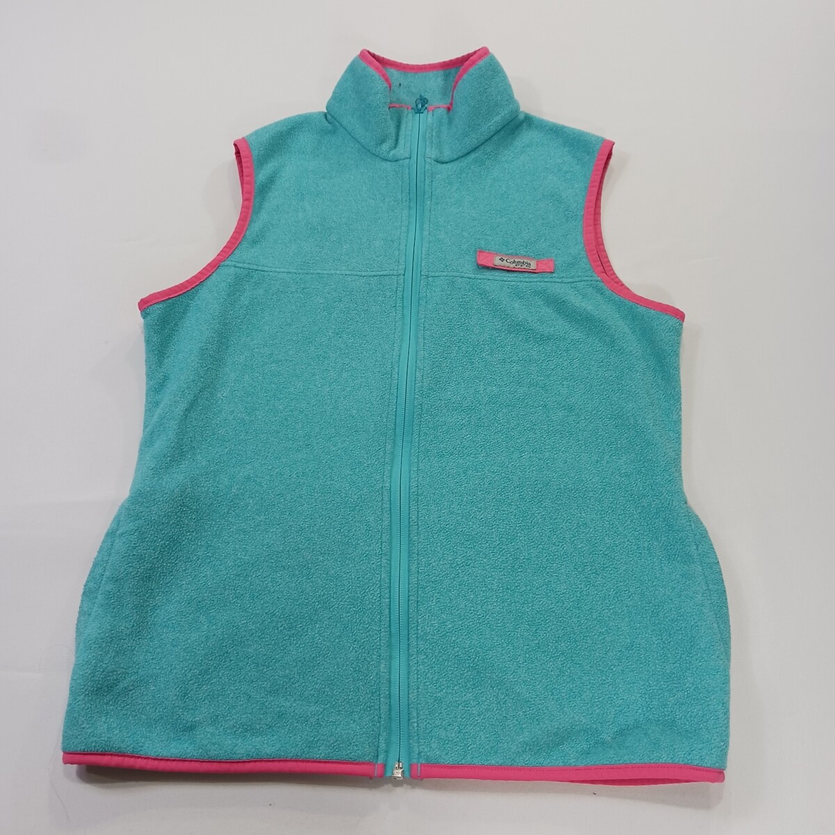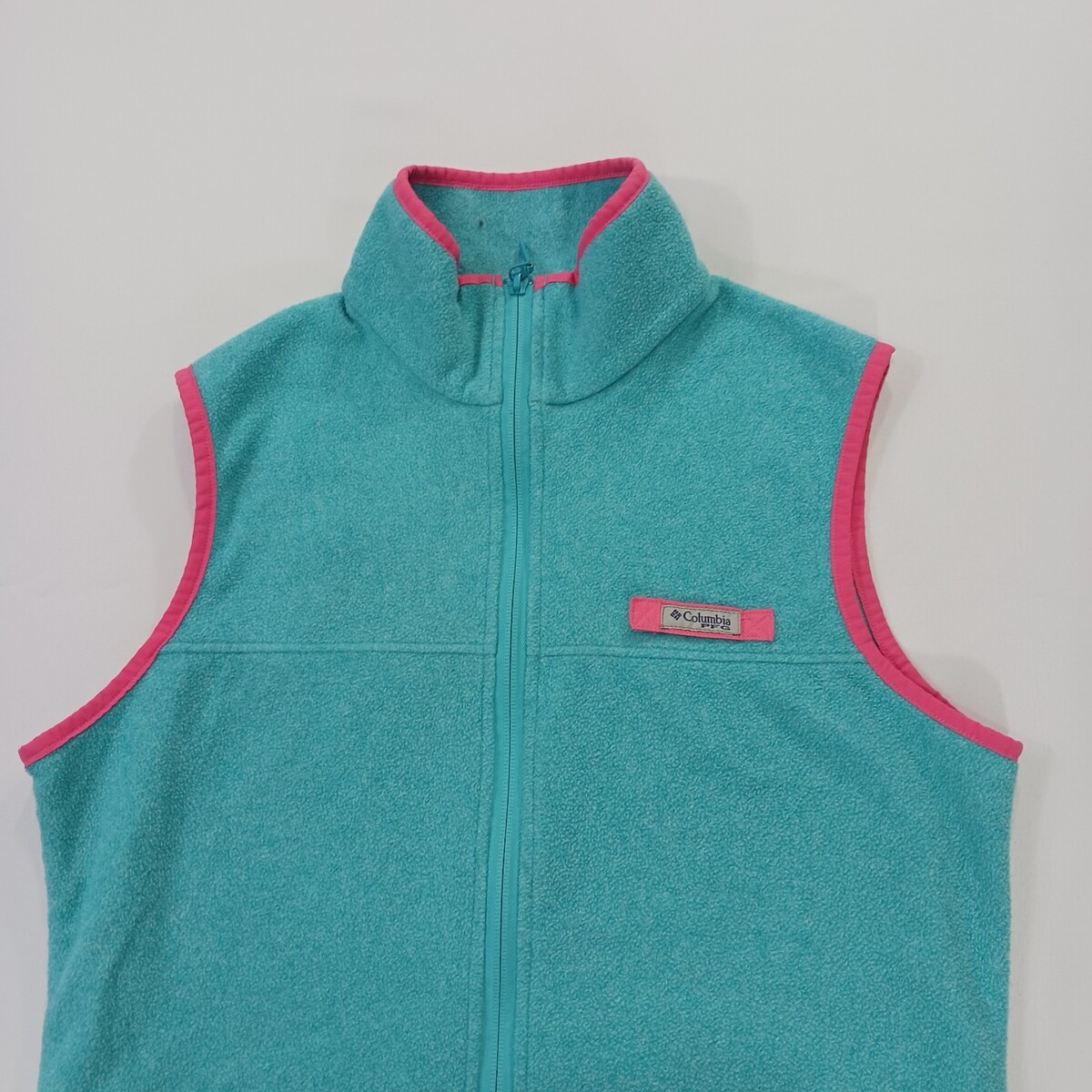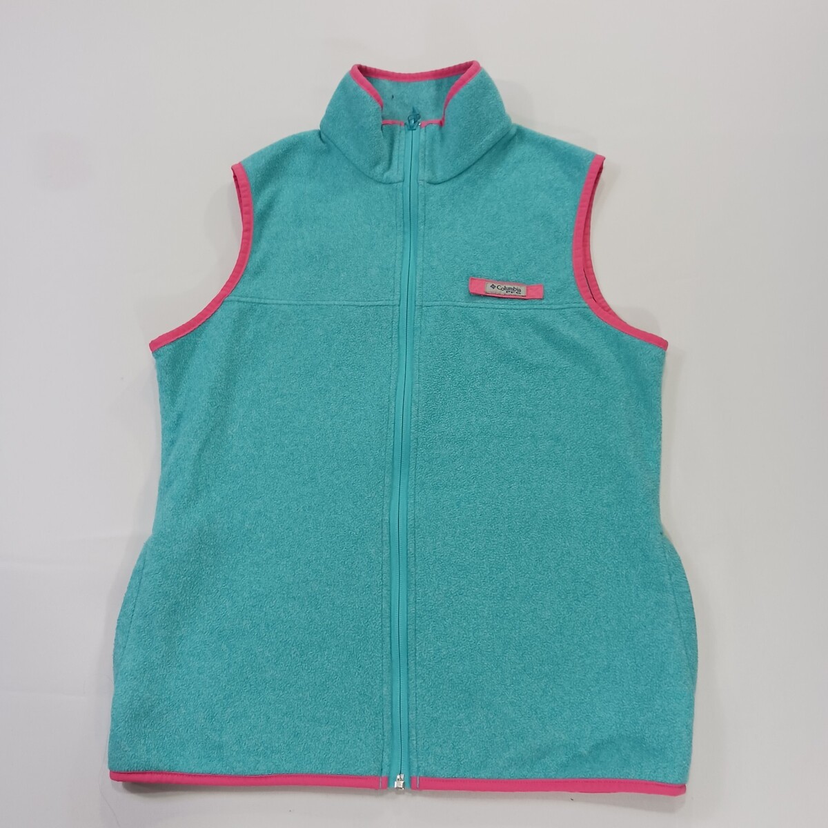 The Columbia PFG Vest for women in size M is a stylish and versatile addition to any wardrobe. This teal harborside sweater features a full zip for easy layering, a mock neck neckline, and a sleeveless design. Made of polyester, this machine washable vest is ideal for travel, casual outings, or workwear. With its solid pattern and colorful theme, this Columbia vest is perfect for outdoor activities or everyday wear. The vest also includes pockets for added convenience.