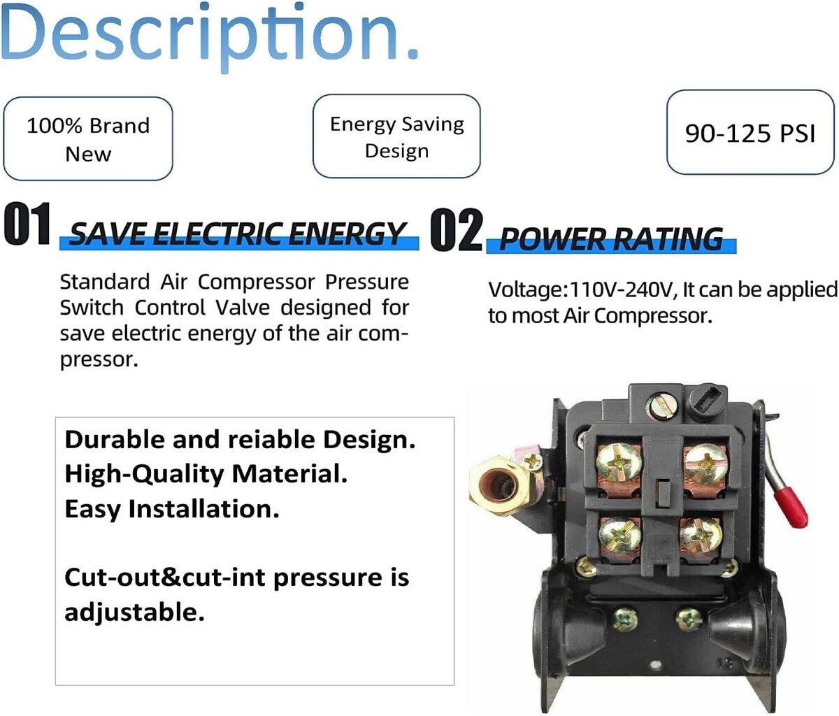 ?Compatible with 90-125 PSI Air Compressors?: This pressure switch is designed to work efficiently with air compressors in the specified pressure range.