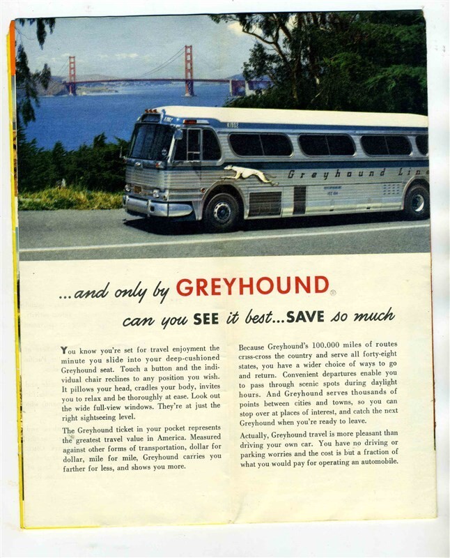To & Through California and All the West by Greyhound Brochure & Map 1956