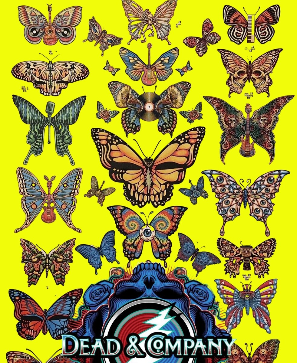 GRATEFUL DEAD & COMPANY 2019 SUMMER TOUR EMEK BUTTERFLIES POSTER METALLIC GREEN