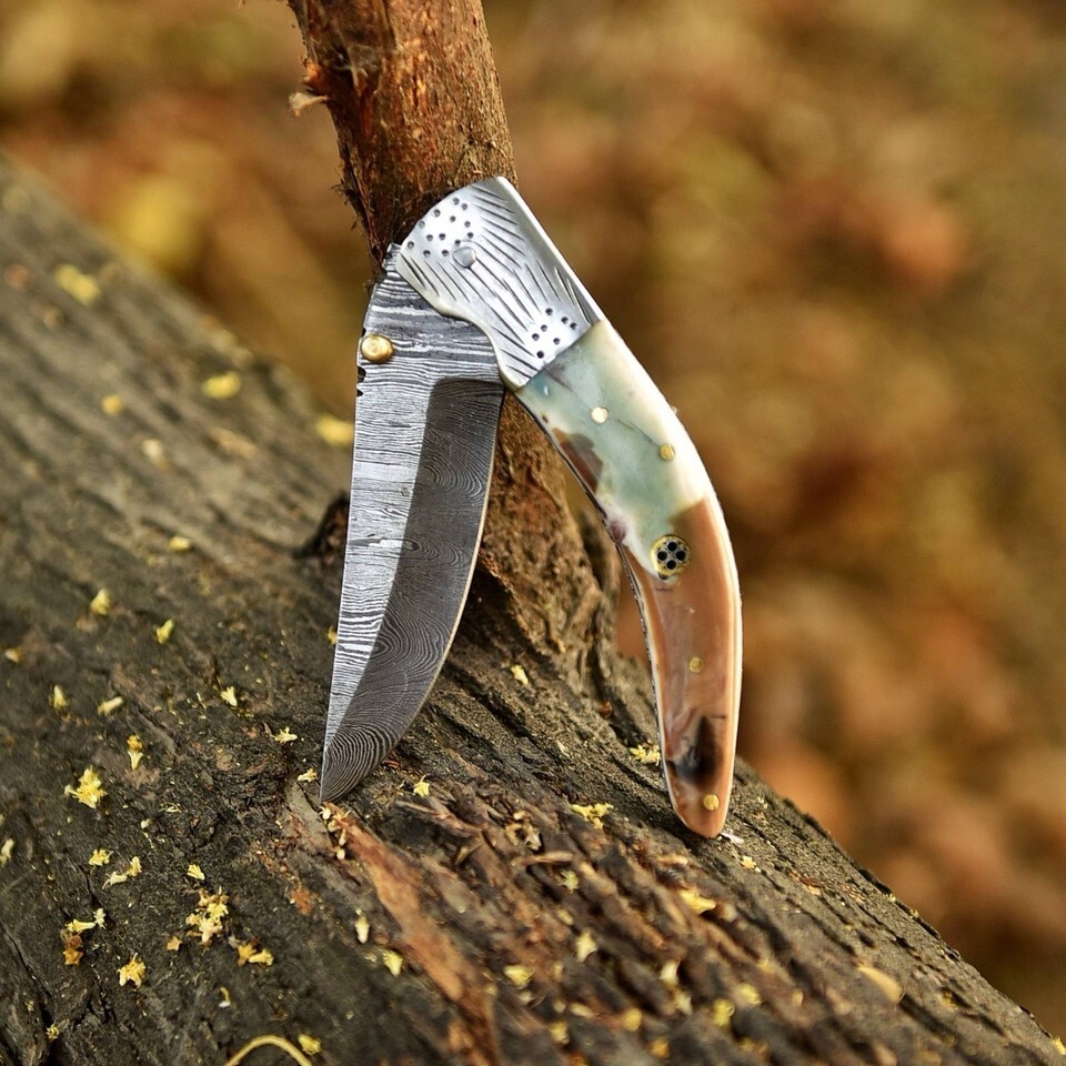 CUSTOM HAND FORGED DAMASCUS STEEL POCKET KNIFE