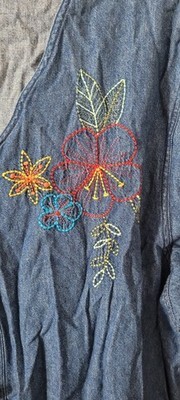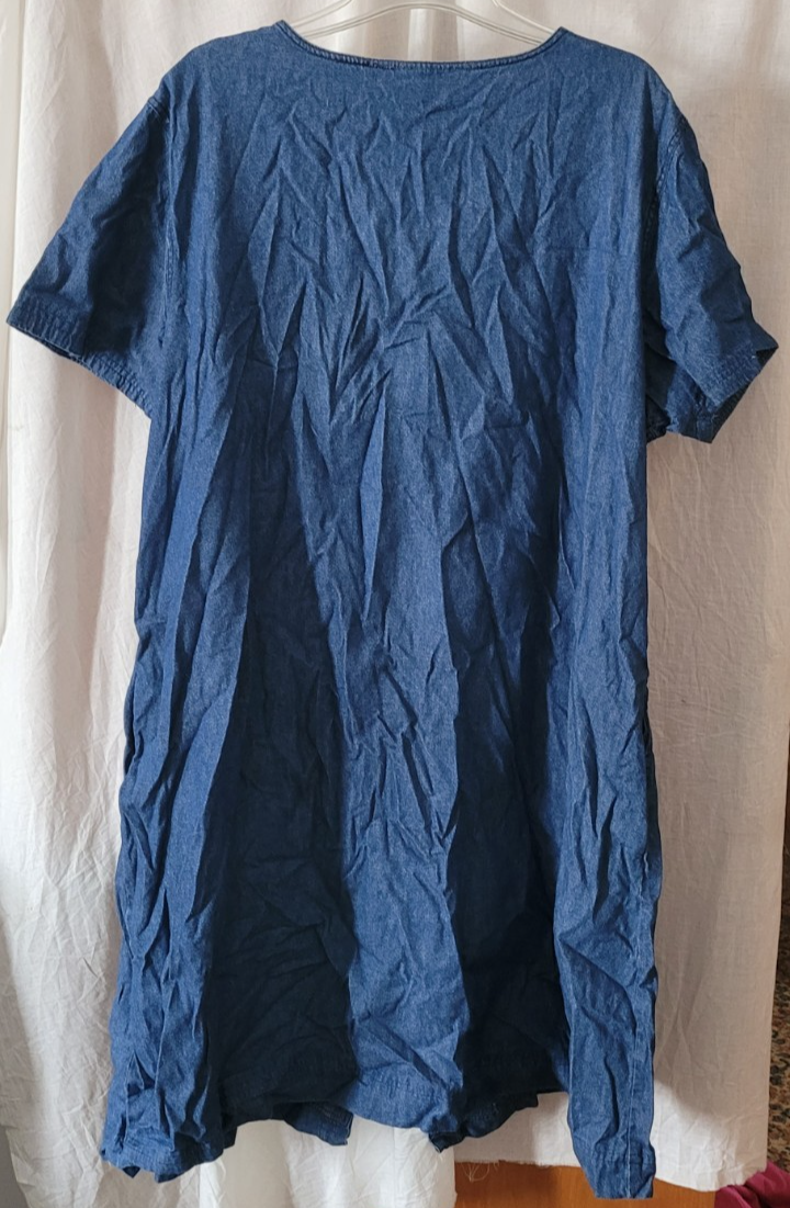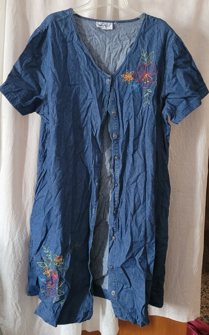 VTG Women's Anthony Richards Dress Denim Button-Up Short Sleeve Embroidered Cute