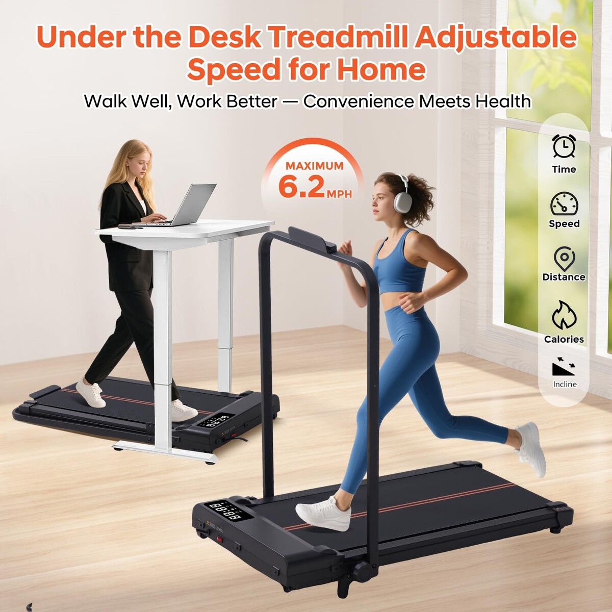 ?Handle Design for Versatility? Easily switch between walking treadmill with Incline and under desk treadmill by folding the bar. This portable treadmill with handles adapts to walking pads with handles, treadmill home small, or compact treadmill setups. Ideal walking pad treadmill with handle bar for home treadmill use.